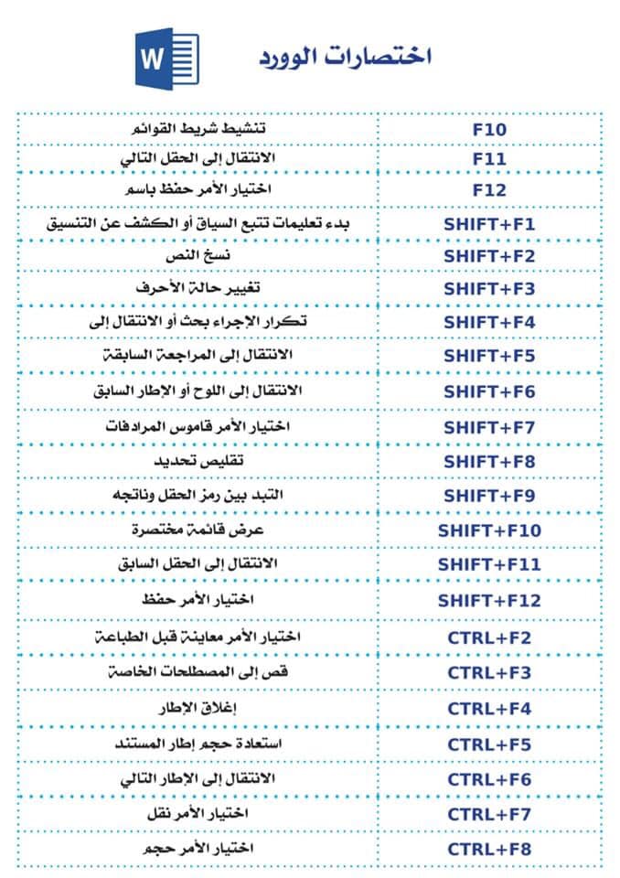 اهم اختصارات لوحة المفاتيح المستخدمة فى برنامج الورد Youtube