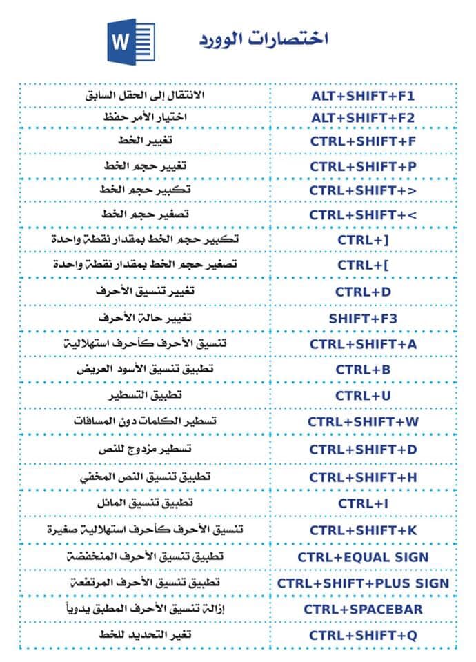 اهم اختصارات لوحة المفاتيح المستخدمة فى برنامج الورد Youtube