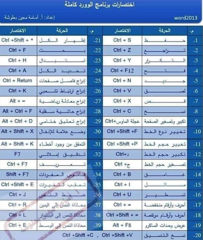 اهم اختصارات لوحة المفاتيح المستخدمة فى برنامج الورد Youtube