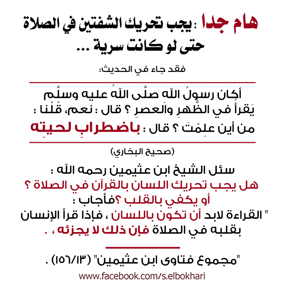 لا بد من تحريك اللسان والشفتين عند القراءة في الصلاة والأذكار