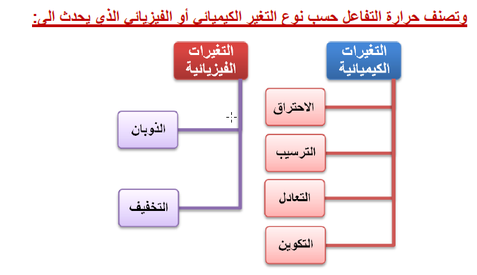 تصنيف حرارة التفاعل حسب نوع التغير الكيميائي والفيزيائي مصطلحات كيميائية