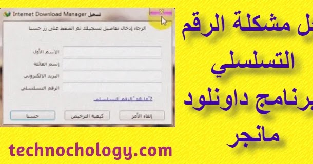 حل مشكله الرقم التسلسلي لبرنامج داونلود مانجر Internet Download Manager تكنوكولوجي