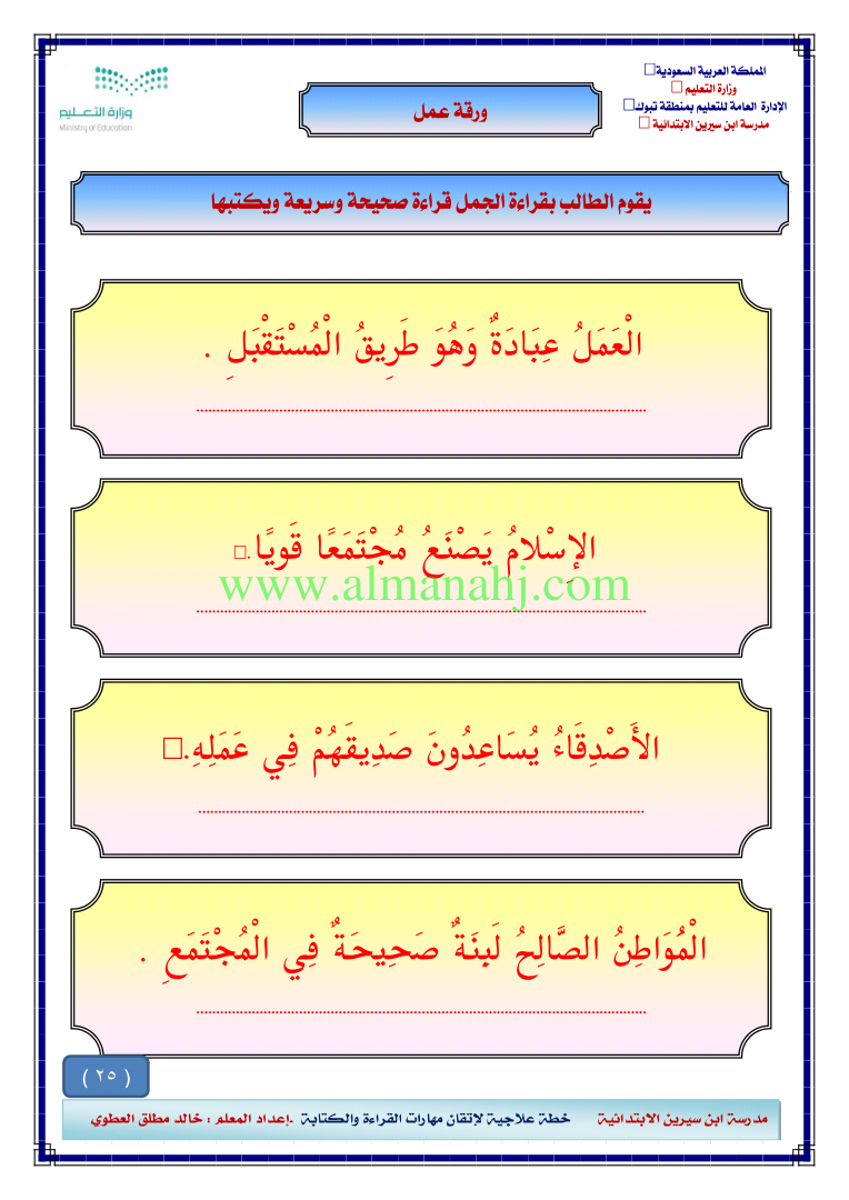 العمل عبادة لغتي الفصل الثاني ثالث ابتدائي المنهج السعودي