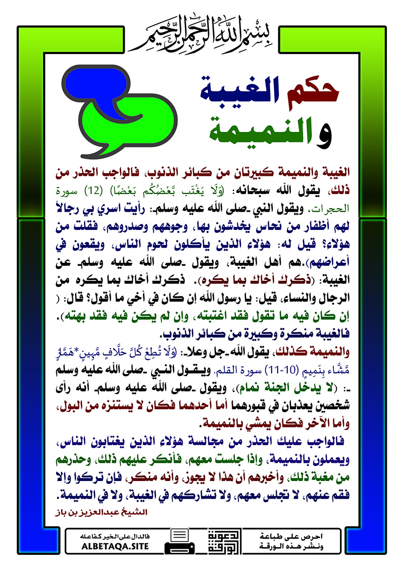 حكم الغيبة والنميمة موقع البطاقة الدعوي