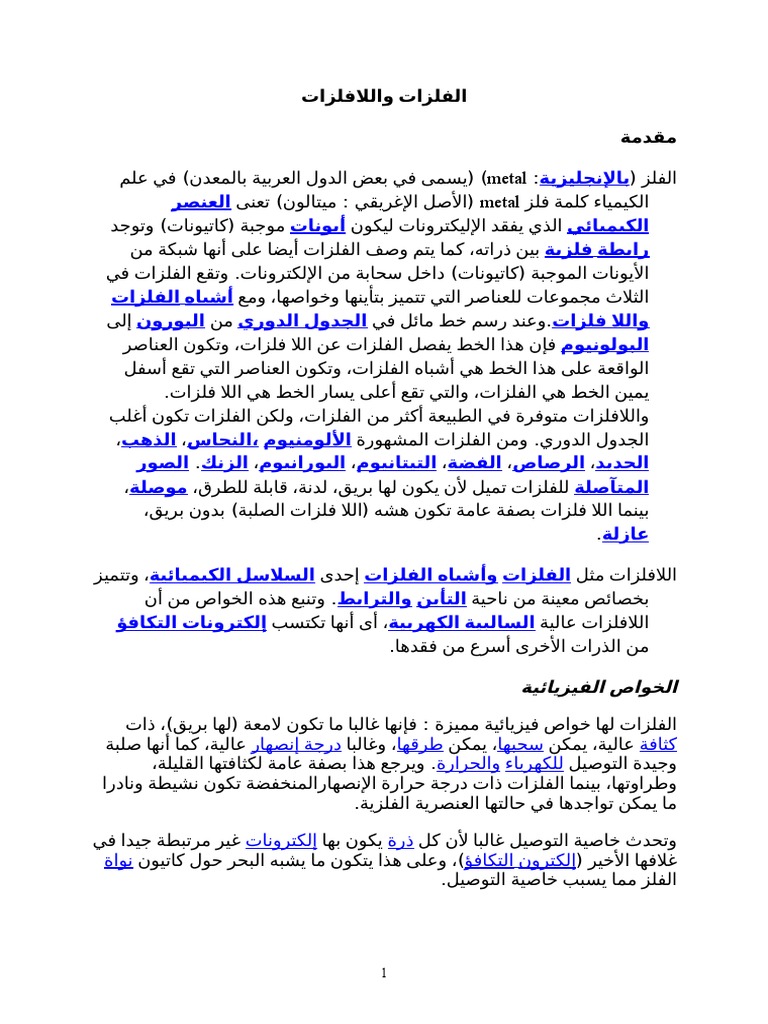 موضوع عن الفلزات واللافلزات واشباه الفلزات ملزمتي