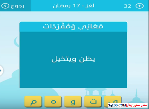 حل لغز يظن ويتخيل من لغز 17 رمضان من لعبة رشفة رمضانية صقور الإبدآع