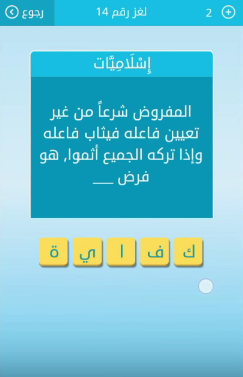 جواب المفروض شرعا من غير تعيين فاعله فيثاب فاعله واذا تركه الجميع اثموا هو فرض من لعبة رشفة ر صقور الإبدآع