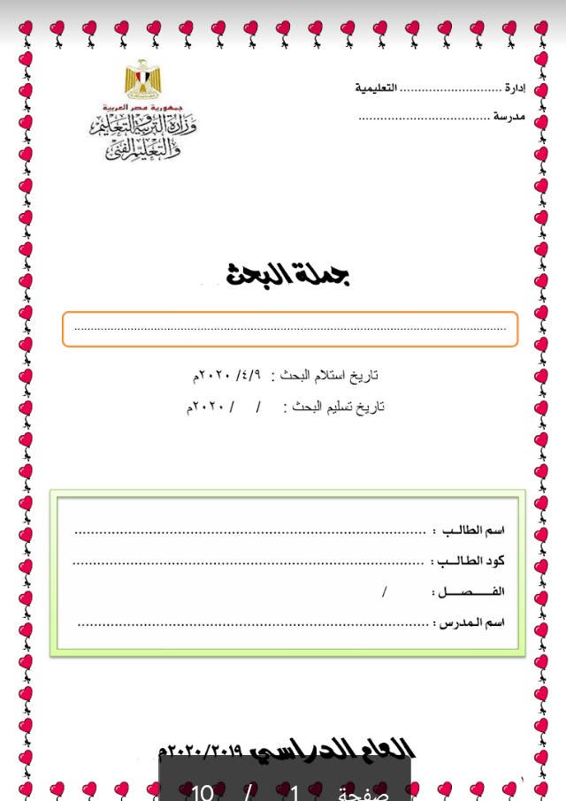 تحميل نموذج بحث جاهز للمرحلة الابتدائية والاعدادية 2020 على الطباعة