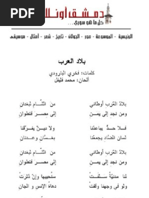 الأغاني والقصائد Songs And Poems بلاد العرب أوطاني